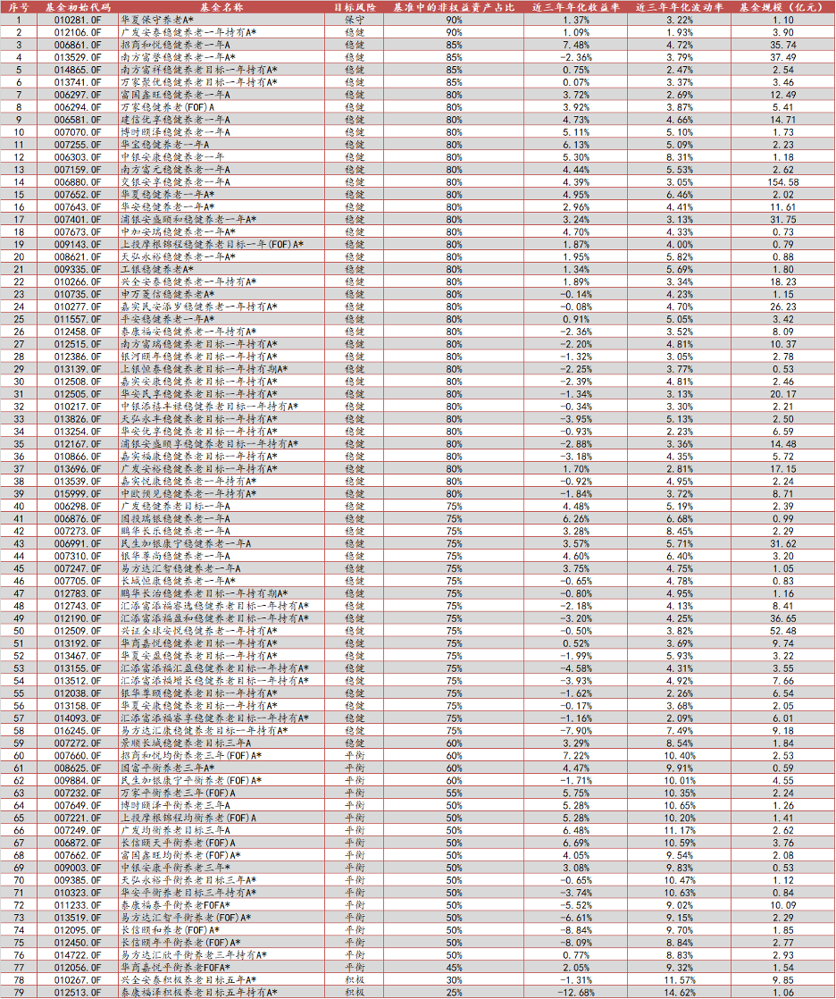 为更好地帮助投资者了解未来个人养老金可投产品的风险收益特征,我们统计了上述129只养老目标基金的收益率和波动率数据,并参考业绩比较基准统计了各养老目标日期基金的权益资产占比和各养老目标风险基金的非权益资产占比以供参考。