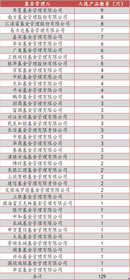 首批入围个人养老金基金发行的管理人共计40家,其中入选产品数排名前三位的是华夏基金(9只)、南方基金(8只)和汇添富基金(8只)。具体名单如下表所示: