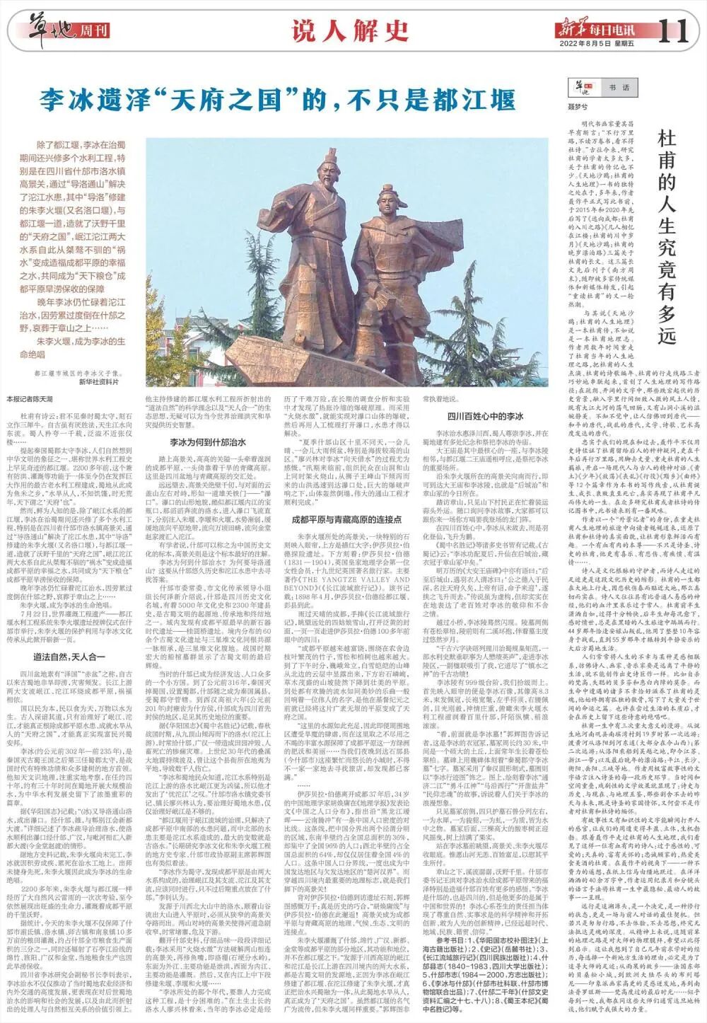 国以民为本,民以食为天,万物以水为生。古人深谙其道,只有治理好了岷江、沱江,才能真正根除成都平原水患、成就水旱从人的“天府之国”,才能真正实现富民兴蜀安邦。