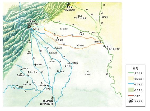 四川盆地素有“泽国”“赤盆”之称,自古以来古蜀地非旱即涝,灾害频发。长江上游两大支流岷江、沱江环绕成都平原,祸福相依。