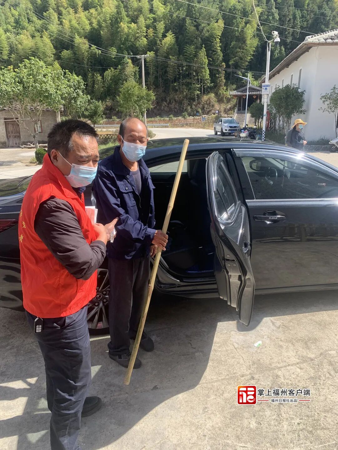 为了将疫情防控工作部署落实到大山深处的每一个角落,闽侯县廷坪乡志愿者李孝长考虑到蕉溪村一位双目失明的老人无法独自去做核酸采集,马上主动申请入户接送李友荣老人。