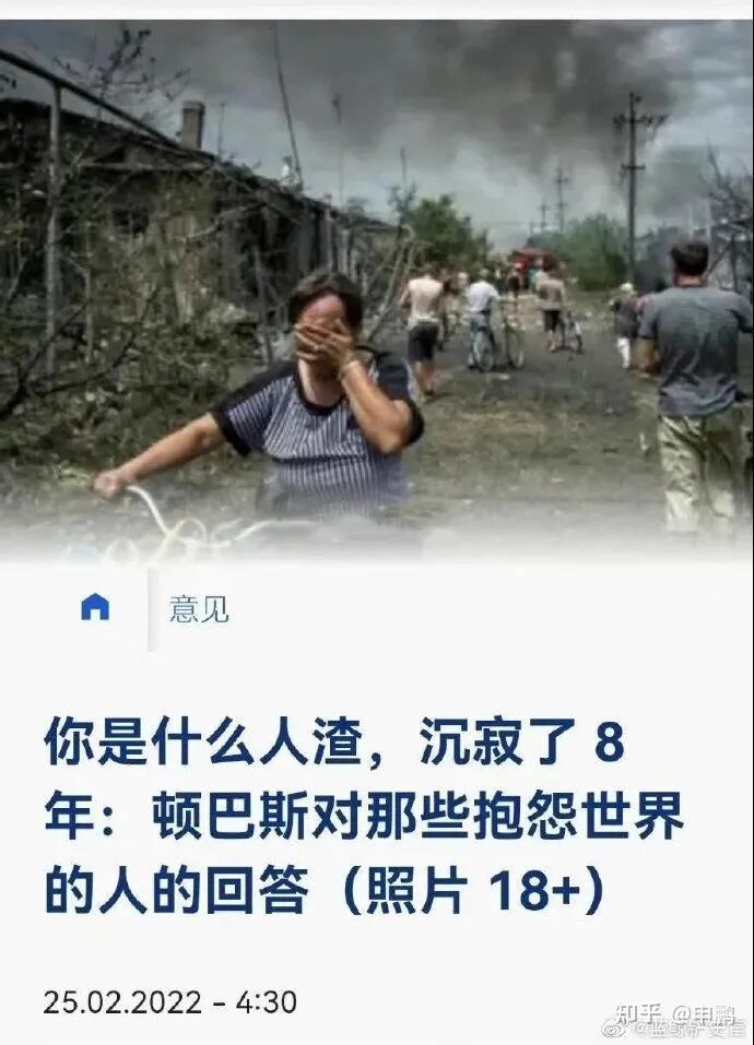 我记得2014年的时候,乌克兰新纳粹在顿巴斯屠杀儿童、种族灭绝的新闻早就有了,但是在俄乌冲突的时候,无数人还是不带脑子“同情乌克兰”,对于乌克兰新纳粹犯下的累累血债视而不见。