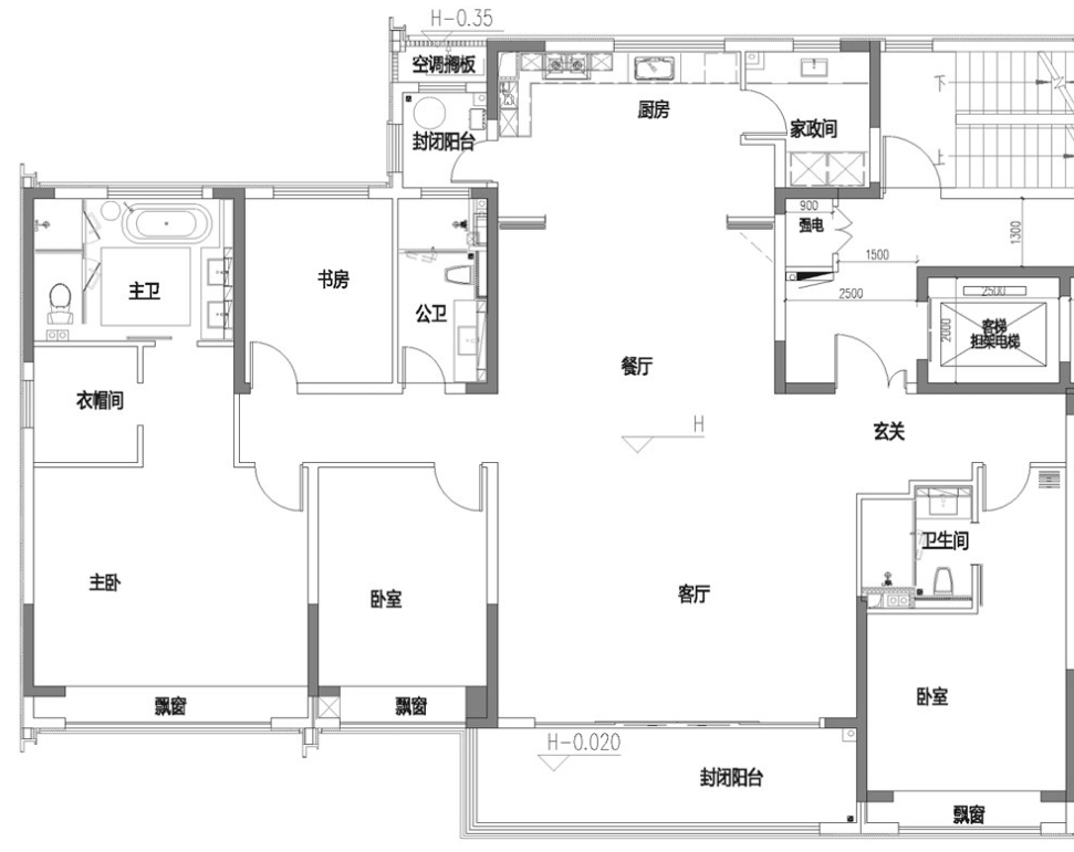 另一个约129㎡洋房户型也做到了4房2卫,大方厅,开间约5.5米,全屋4个飘窗,尺度十分舒适。