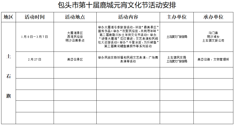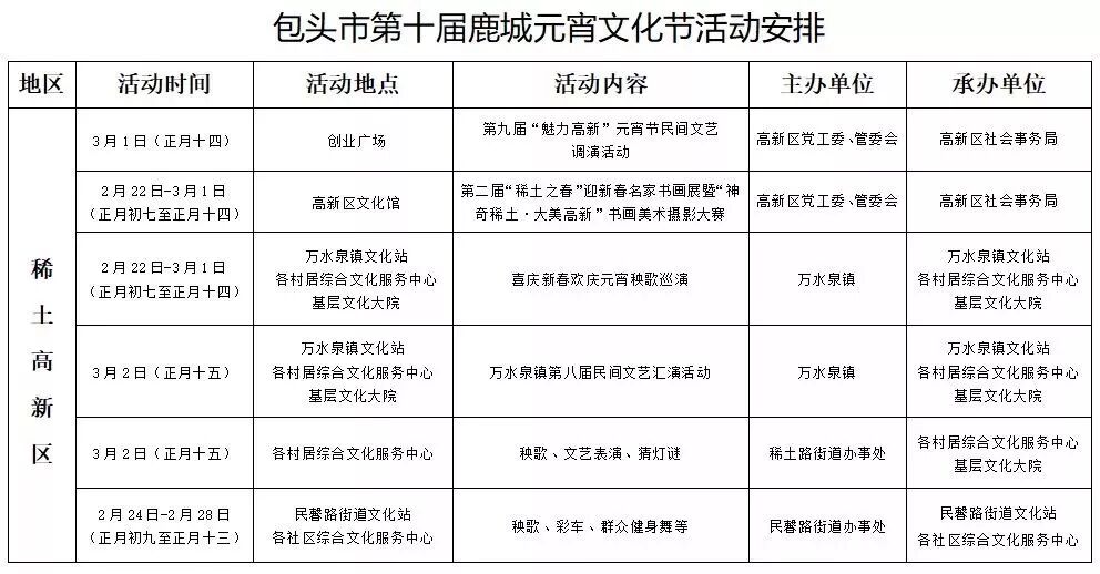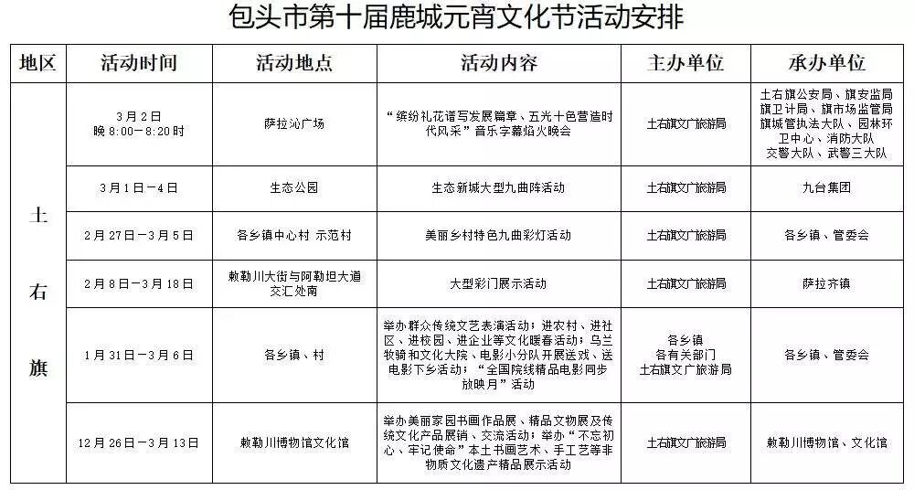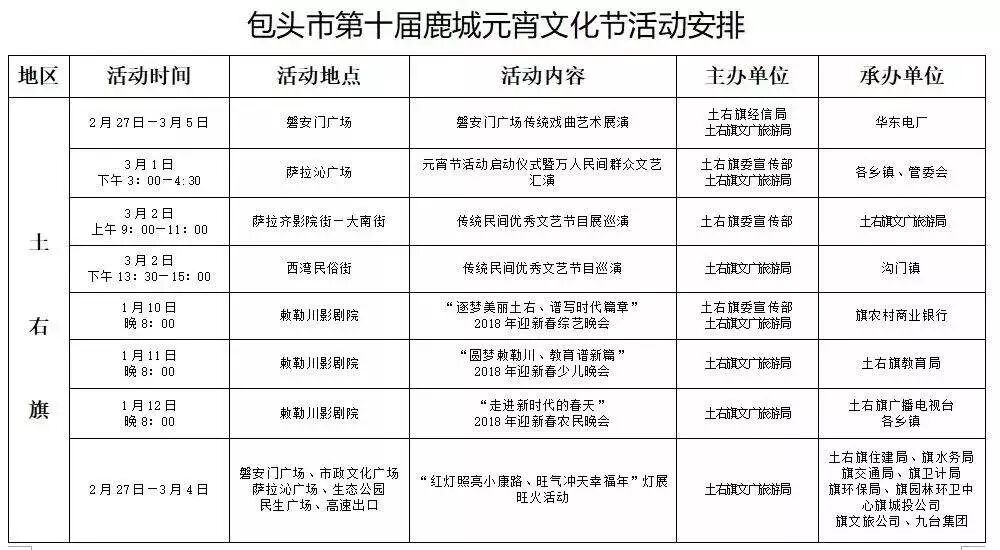 四、九原区。2月28日举办传统街头文艺汇演,13时至16时对沙河街的210国道至建设路段、文明路的彩虹桥至哈屯高勒路段实施交通管制。