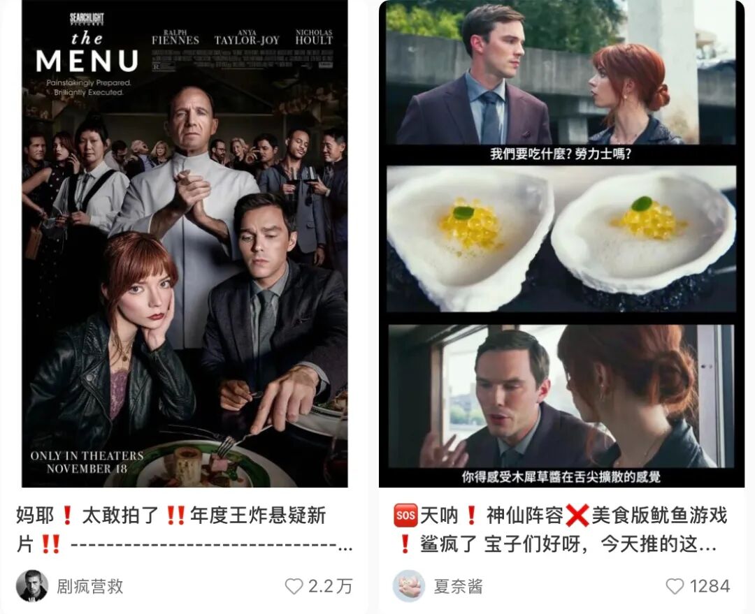 今年刷爆社交媒体的电影,美食惊悚片《菜单》要属其中之一了。