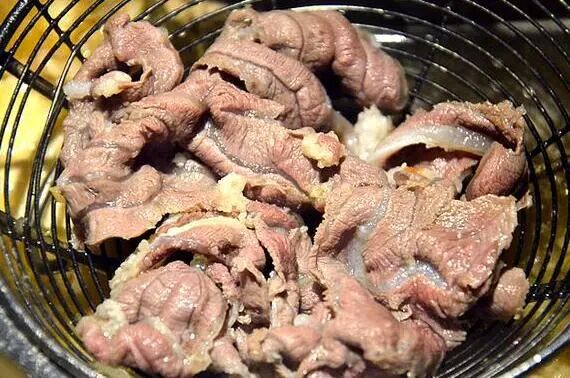 脖仁:位于牛肩背脊前侧,与颈部相连,是运动最频繁的部位,因此肌肉发达而低脂。牛上脑同样也属于这块区域,这一部分的肉质细嫩多汁,肥瘦适中,适合涮火锅。不过脖仁价格却比上脑昂贵不少,据说每一头牛只能出品1000克左右的脖仁。