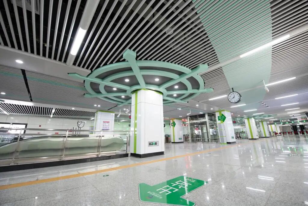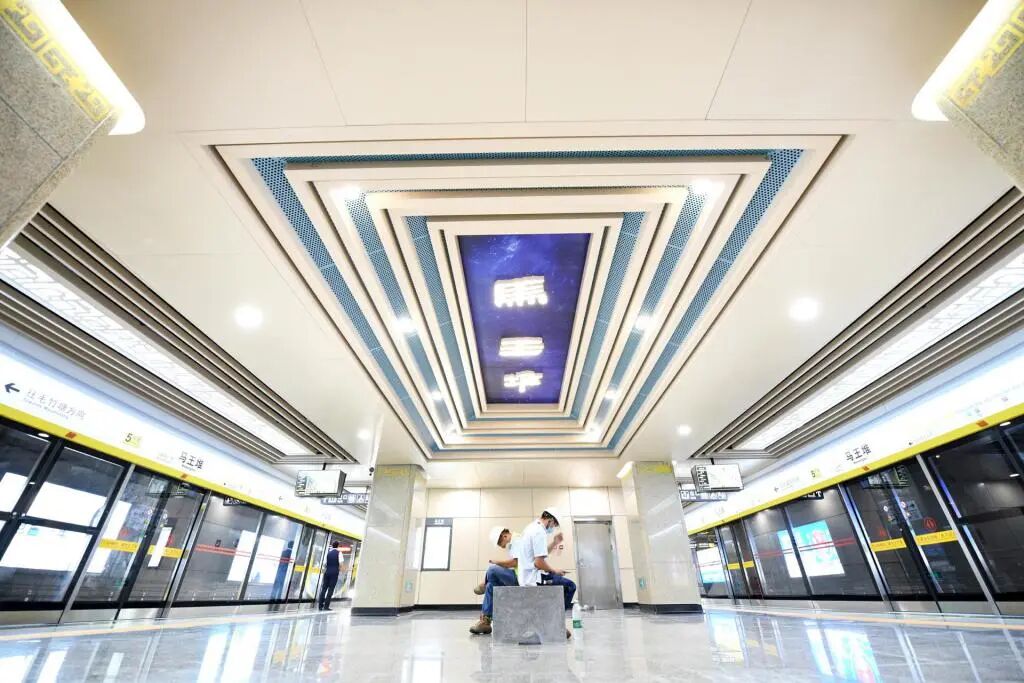 2020年6月28日,长沙轨道交通5号线开通试运营。5号线一期工程作为长沙市轨道交通线网中主城区东部的南北向骨干线路,全长22.5公里,起于雨花区毛竹塘站,止于长沙县水渡河站,连接雨花区、芙蓉区、开福区和长沙县。共设车站18座。(图为马王堆站)