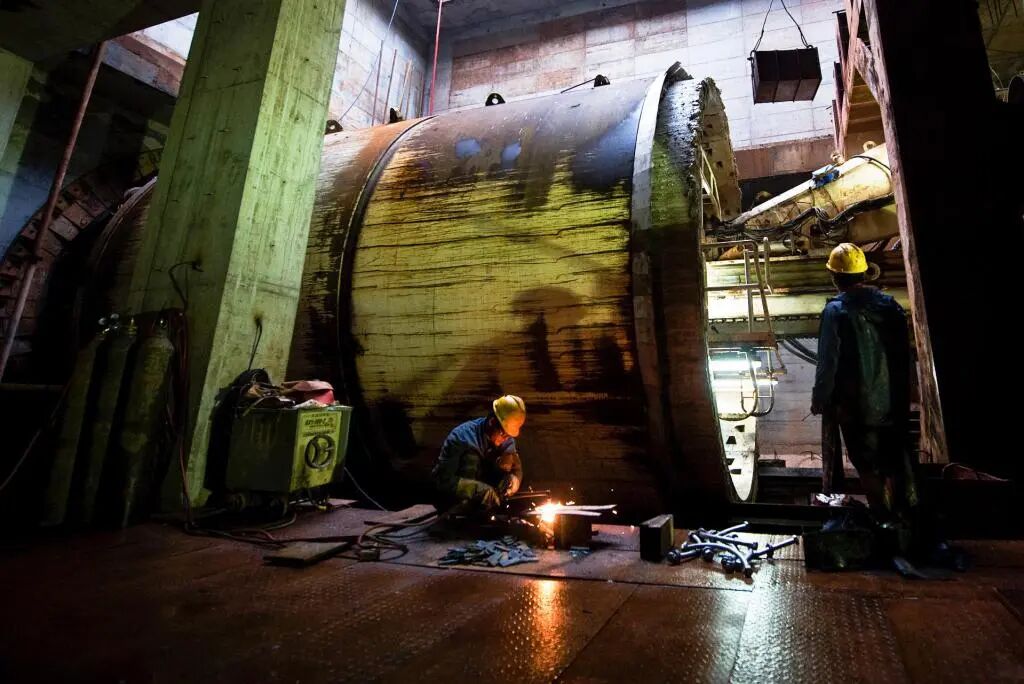 2012年11月8日,长沙地铁2号线地下施工现场,施工人员正在进行构机维护。当月26日,长沙轨道交通二号线一期工程全线 "洞通"。