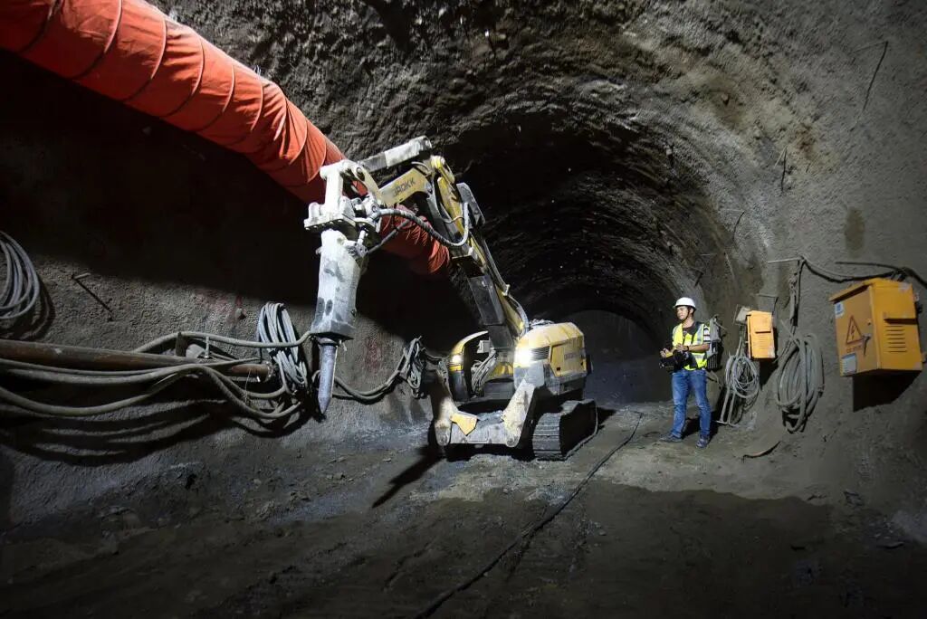 2019年5月29日,长沙地铁6号线二标段区间(湘雅三医院站至六沟垅站),施工人员正在操作挖掘机器人。