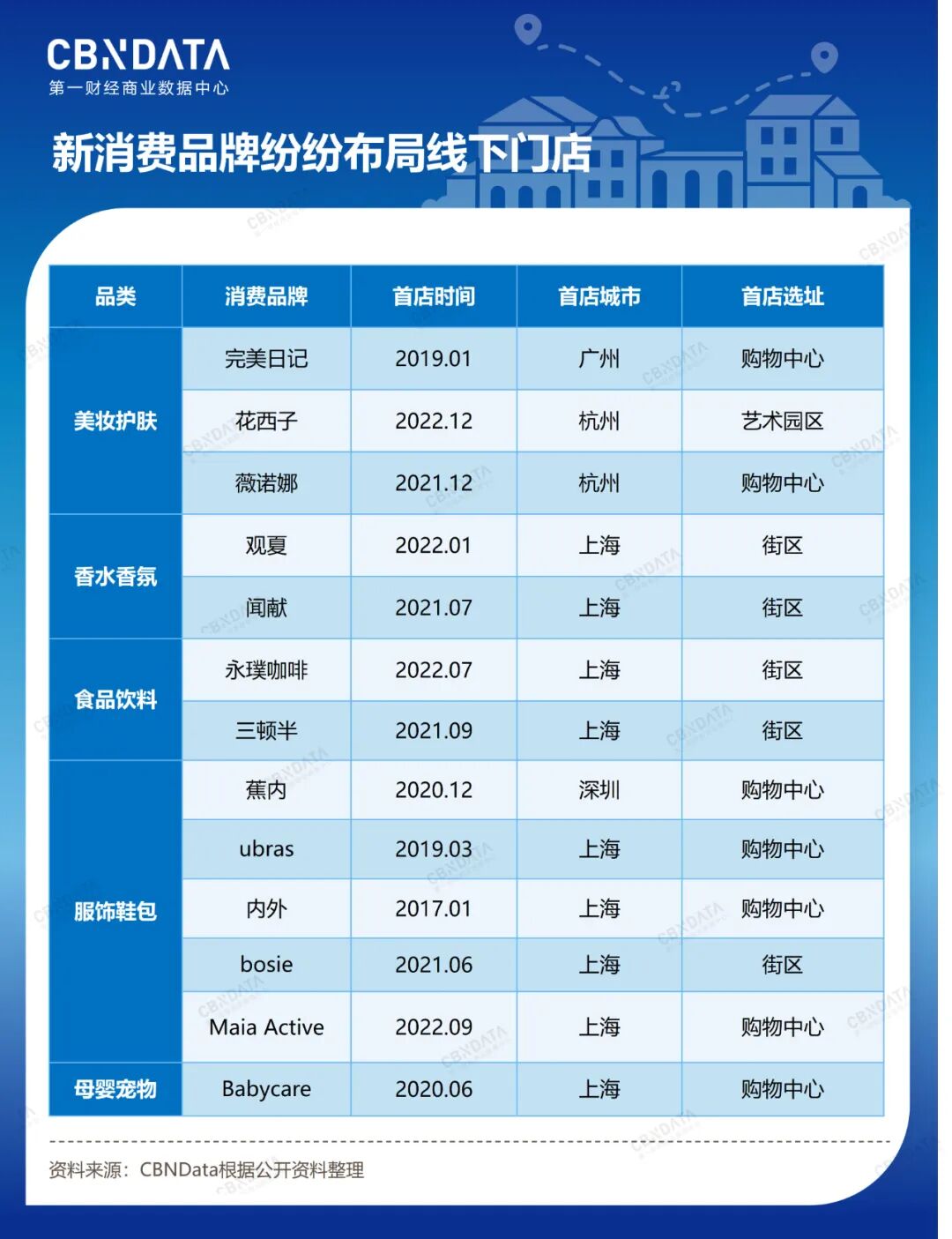 过去几年来,布局线下似乎成为一种共识,越来越多新消费品牌开始去线下开店,香水赛道的观夏、闻献;美妆赛道上的完美日记、花西子;食品赛道上的永璞、三顿半等;服饰赛道上的蕉内、ubras、bosie、MAIA ACTIVE等都开出了线下首店。