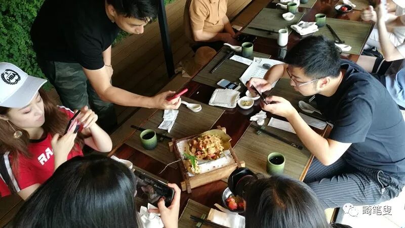 每上来一盘菜,他们岂止是拍照,有的拍短视频,几分钟后,就在群里和朋友圈里可以看到,还配了乐的呢;有的干脆就直播了,零延迟。