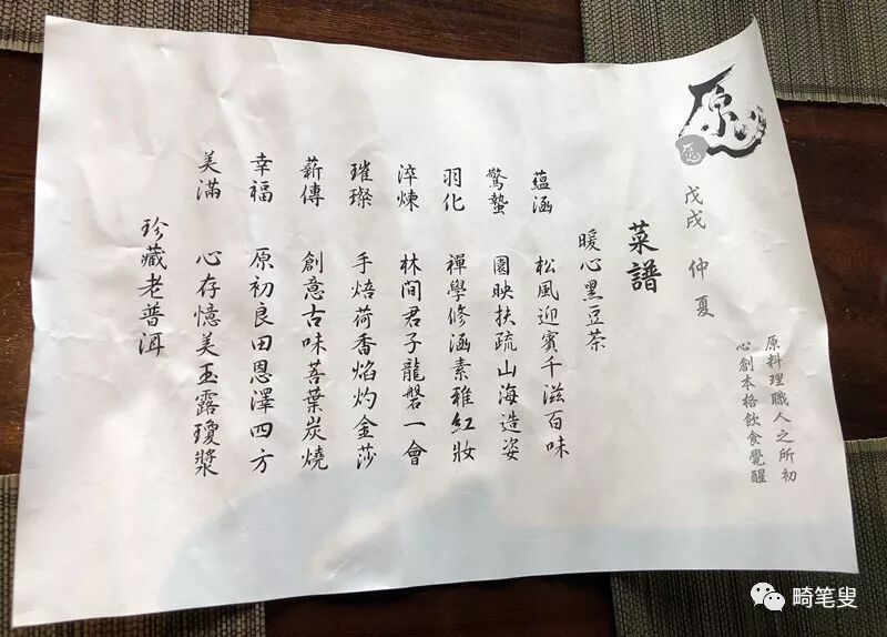 其实,菜单还是有的,就在桌上,麻绳绑住,插在一个小瓶子里。