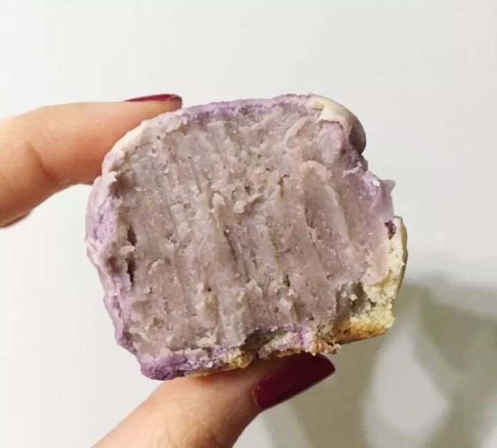 9:1 的馅皮比例,每一颗芋头酥中的芋泥都是用纯正芋头打成的,没有乱七八糟的麻薯、咸蛋黄、肉松的混入,就是很天然、很纯粹的芋头香。酥皮层层起酥,薄得能看到里面的馅,而且没有酥油加入,吃起来不腻;牛奶和面,所以回味还有浓郁奶香。