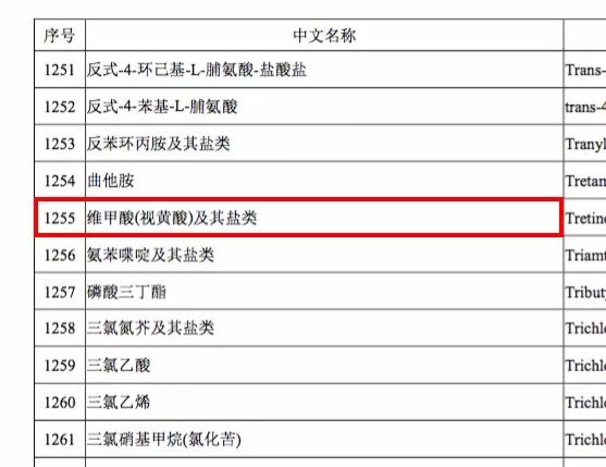 ▲ 维甲酸,即维 A 酸,来自《化妆品安全技术规范(2015 年版)-化妆品禁用组分》