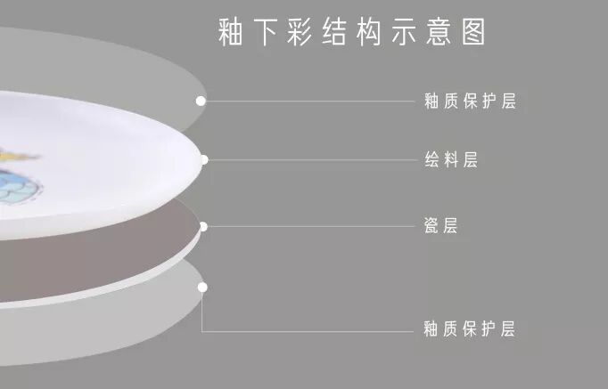 所谓“釉”,简单来说就是覆盖在陶瓷制品表面的无色或有色的玻璃质薄层。看下面 3 张图,你就能明白釉下彩、釉中彩、釉上彩制作工艺、结构上的不同: