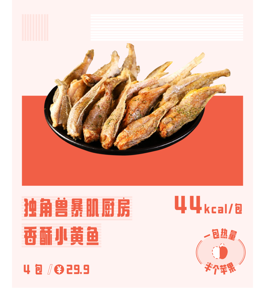 我以前也买过其他家的黄鱼酥,同样的克重下,热量是独角兽的 3 倍,脂肪和钠含量是它的 6~7 倍,但就这么不健康,做得都没独角兽好吃,你说离不离谱?