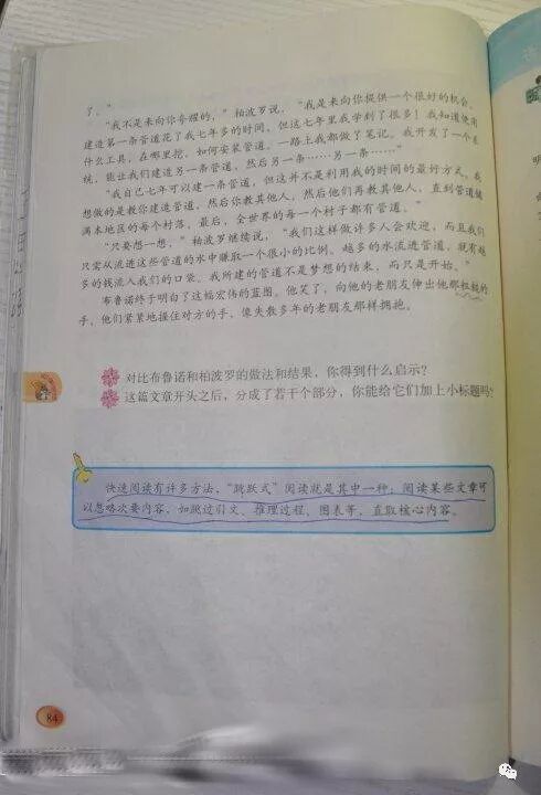 正在上五年级的孩子教科书里居然有管道的故事,真是太有危机感了!” 美国作家贝克.哈吉斯的《管道故事》出现在小学五年级的语文教科书中!特意拍下来与你分享!