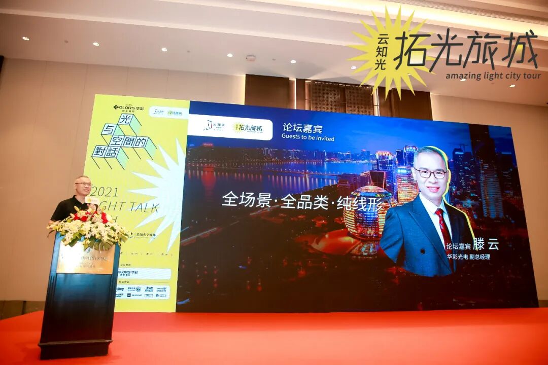 线形照明这几年发展得如火如荼,为很多优秀的项目增光添彩,关于线形产品的应用,华彩光电副总经理 滕云带来了《全场景·全品类·纯线形》的主题演讲,向我们介绍了华彩光电推出的6大产品矩阵:柔性灯带、一体化照明产品、新型照明系统以及标准灯具和超高温系统等等。