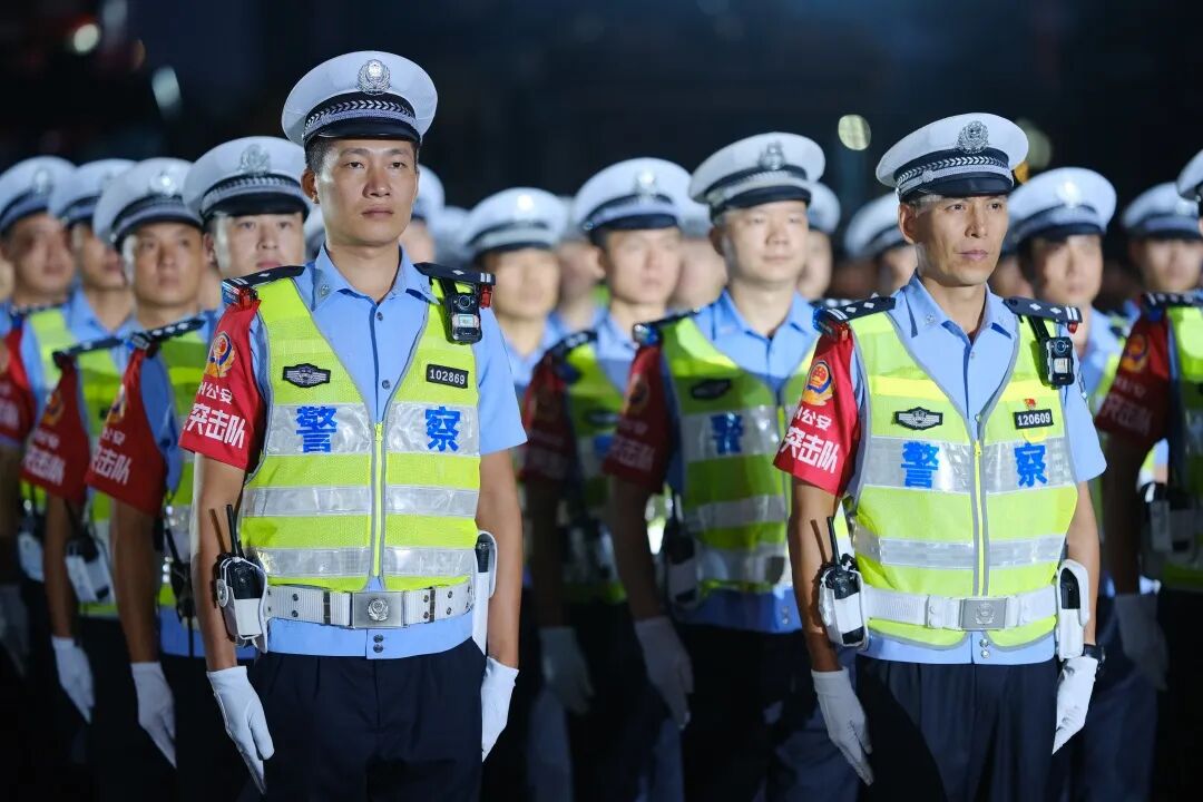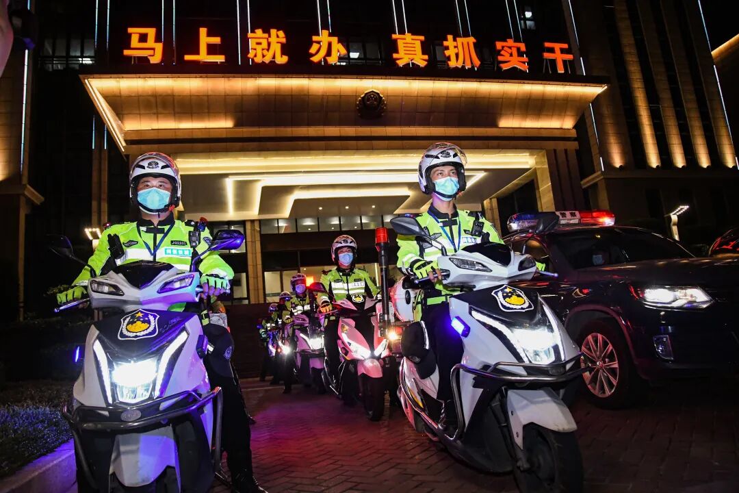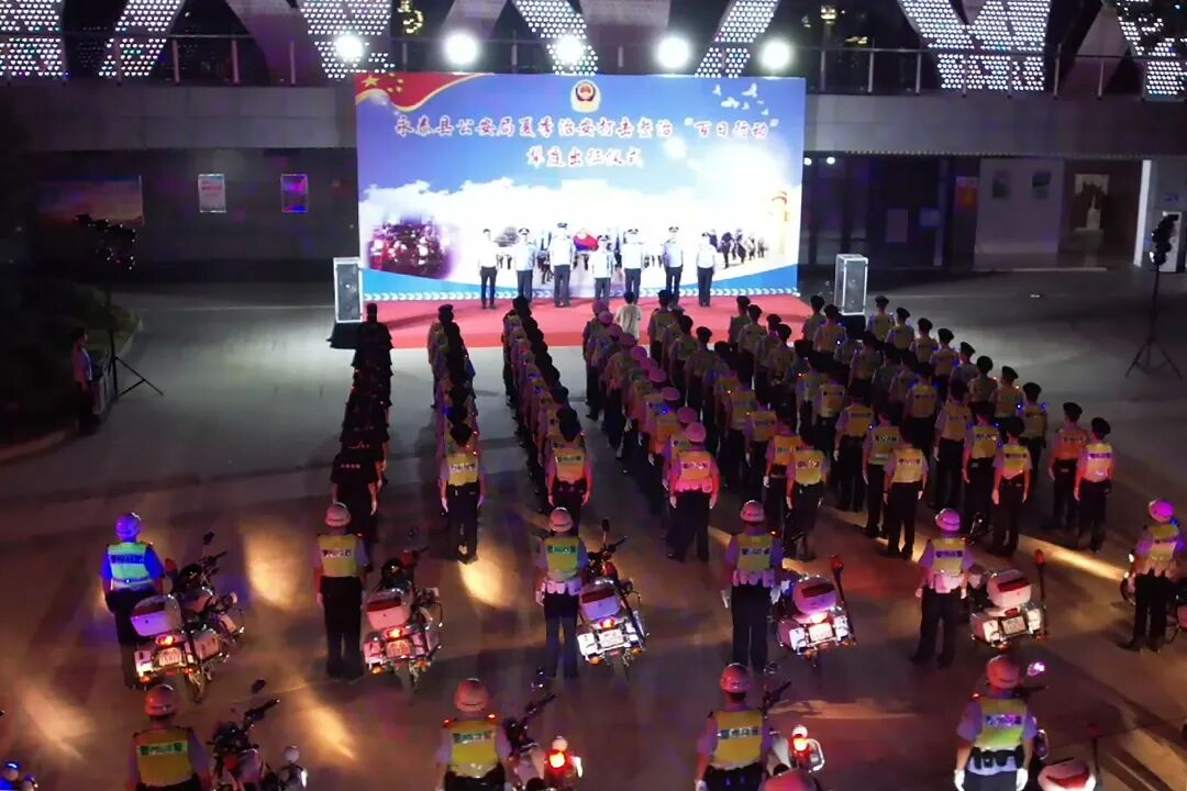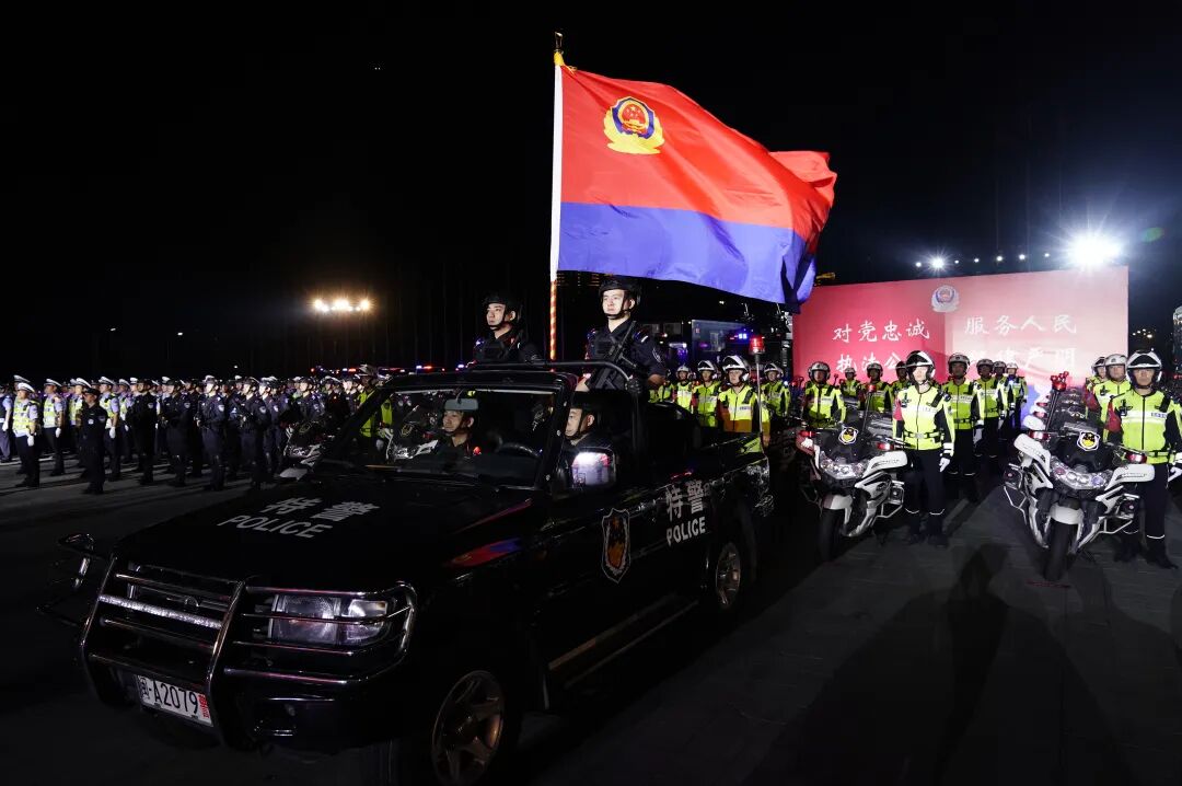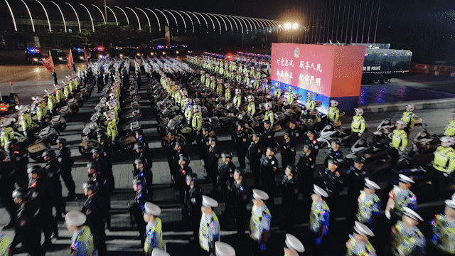警灯闪烁、英姿飒爽、气势磅礴。当晚7时30分,出征代表队伍近500人及车辆装备整齐列队、蓄势待发。