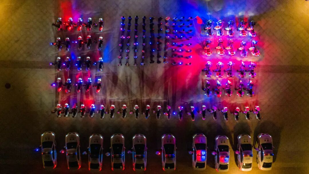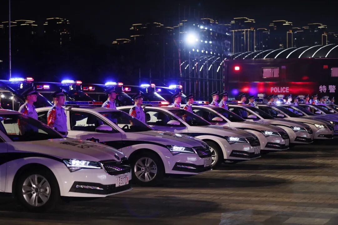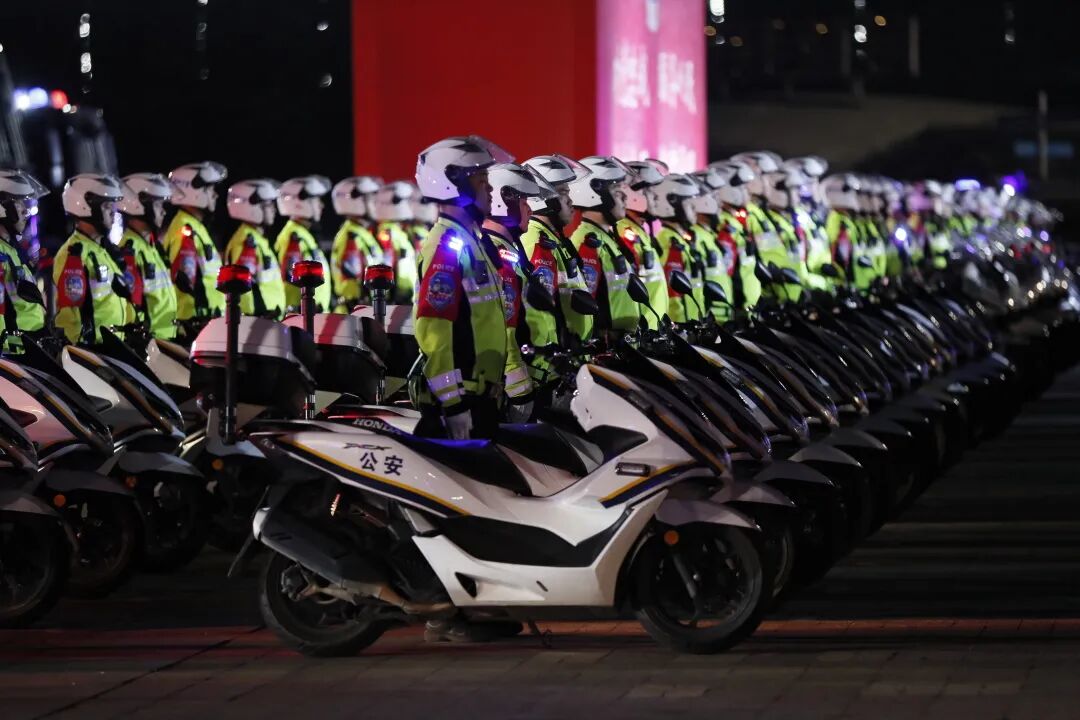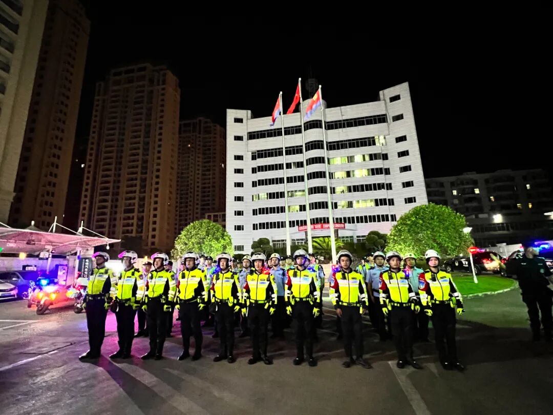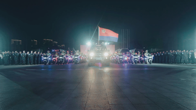 警灯闪烁、英姿飒爽、气势磅礴。当晚7时30分,出征代表队伍近500人及车辆装备整齐列队、蓄势待发。