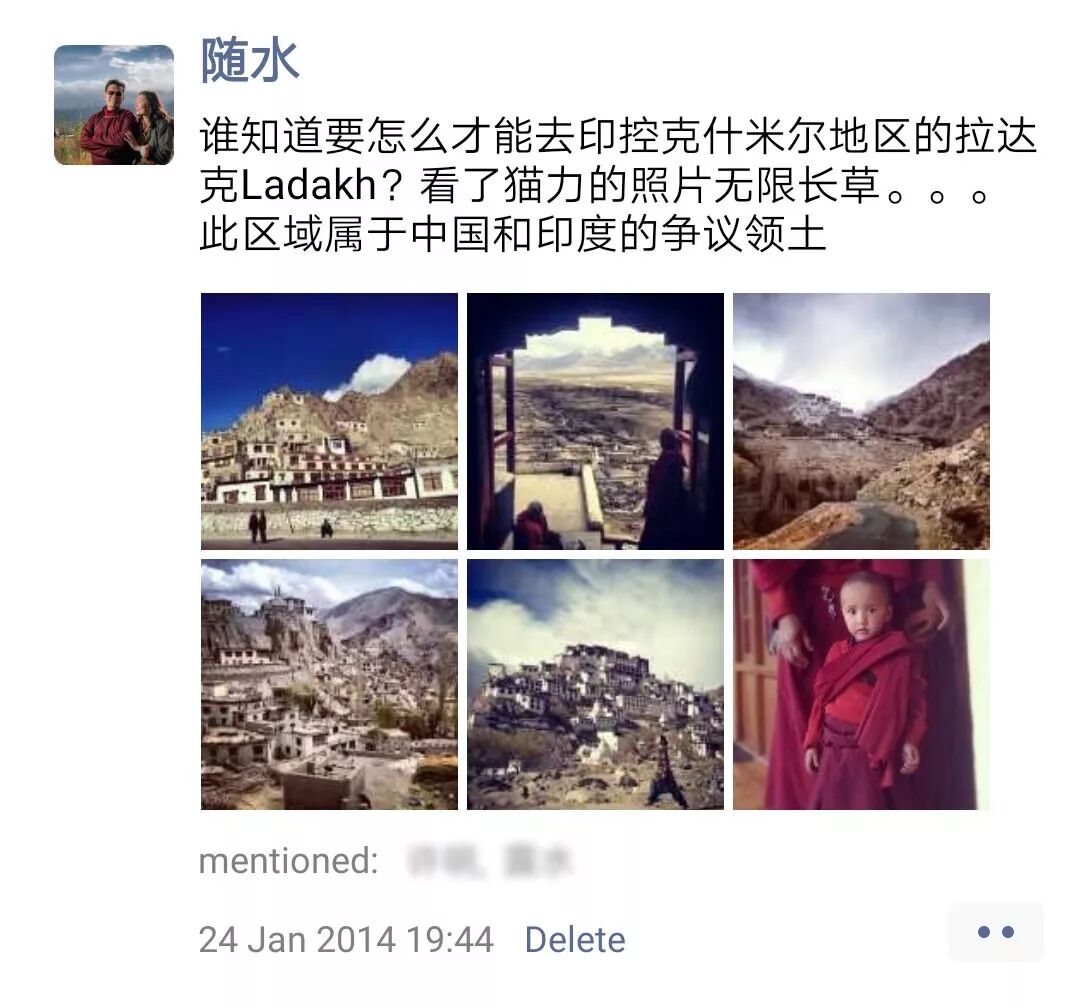 这是我当时看到的猫力在拉达克拍的照片,并转发到了朋友圈。