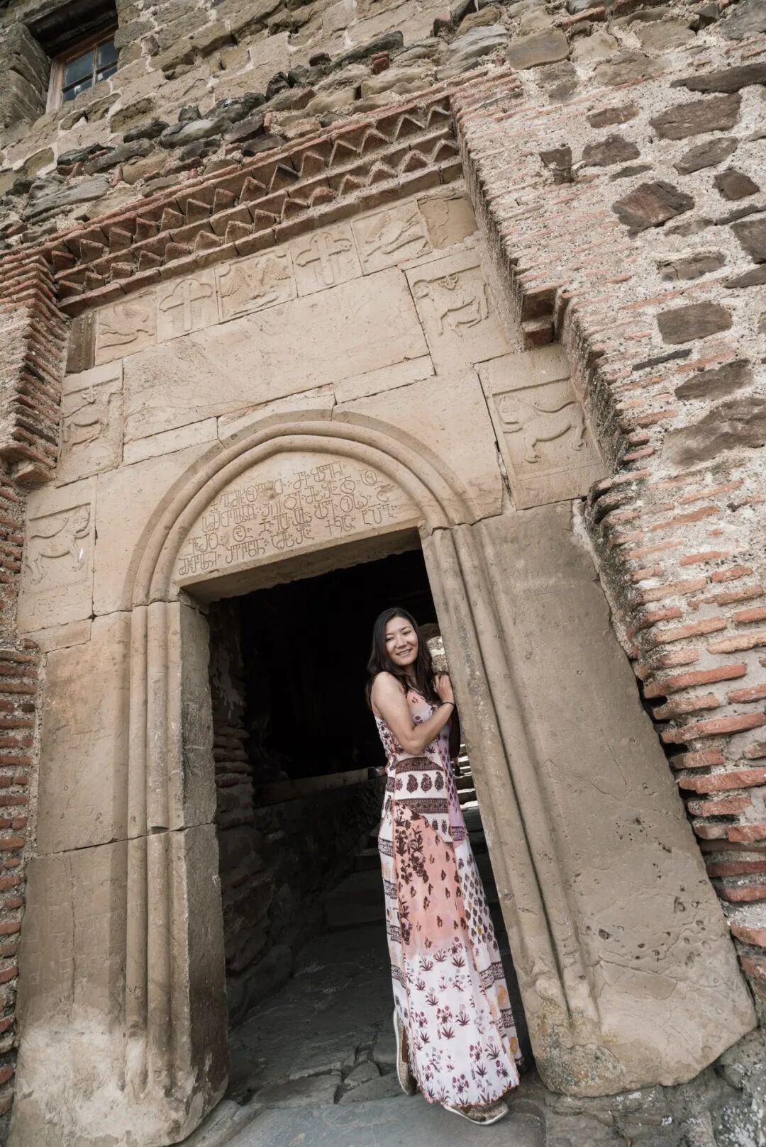 除了生命之柱大教堂之外,姆茨赫塔河对岸山顶上的十字架修道院(Jvari Monastery)也值得去看看,这座修道院异常古老,从公元六世纪起外观就没什么太大变化,当年建造者的铭文依然可见,就算外行也能看出这座建筑的风格跟许多其他的格鲁吉亚教堂不太一样,其风化程度是我在格鲁吉亚见过的所有教堂中最为严重的。