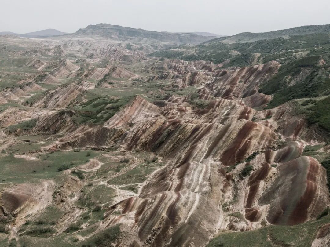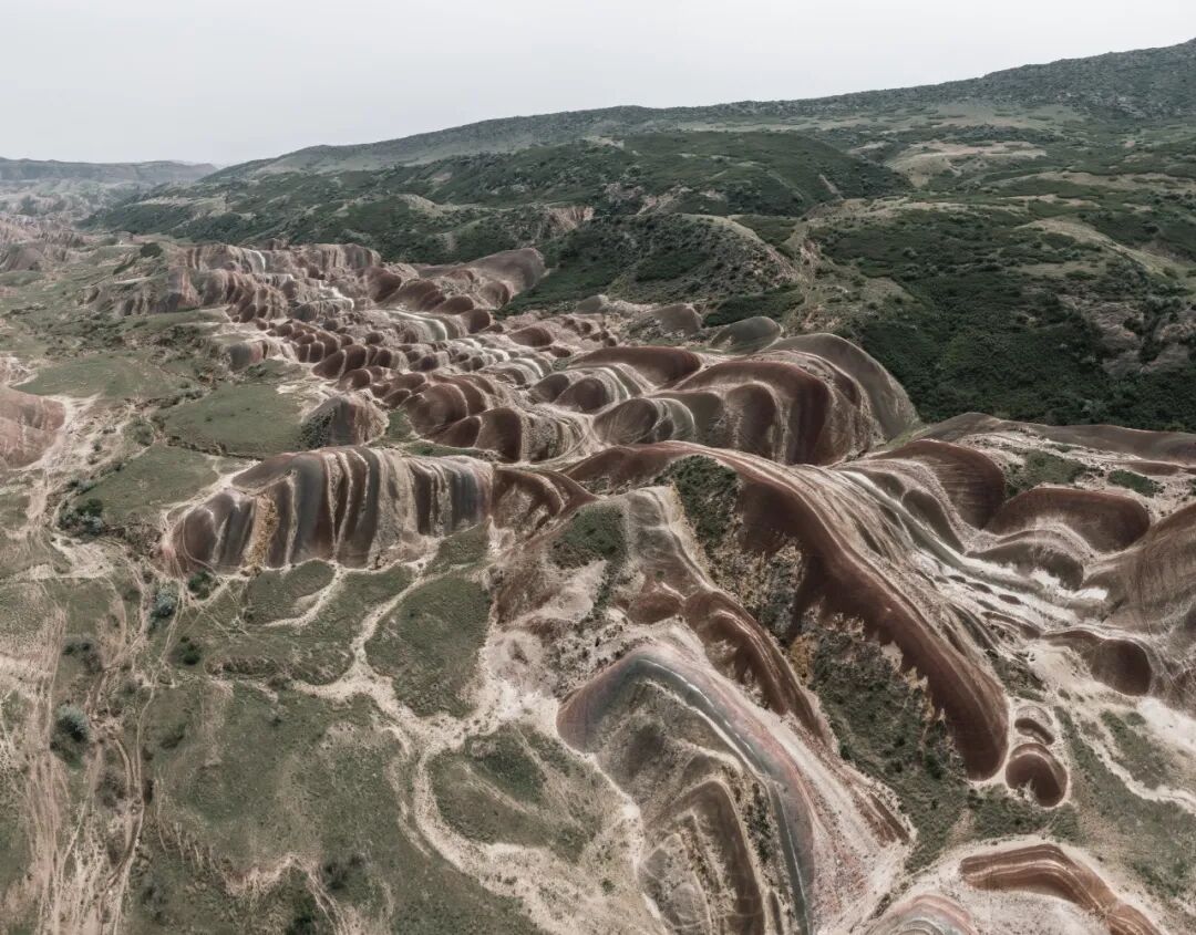 大卫·加列加修道院本身无甚看点,洞穴分布零星气势不足,古代壁画的完好程度甚至不如阿尼古城,建筑本身也乏善可陈。惊艳到我的倒是这附近的丹霞地貌,这里的丹霞地貌不同于我所知的任何丹霞景区,如同河床上的鹅卵石一般光润,却又波澜起伏。要是搁在国内的话肯定是圈地开发旅游、修栈道、建观景台的节奏,而格鲁吉亚人民似乎完全忽视了这一地质奇观,甚至没有道路可供深入,我只能用无人机一窥究竟。