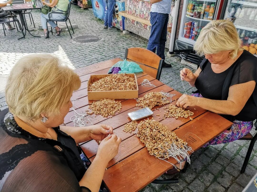 格鲁吉亚的一种特色小吃,把核桃仁串起来,做成一种叫Churchkhela的小吃