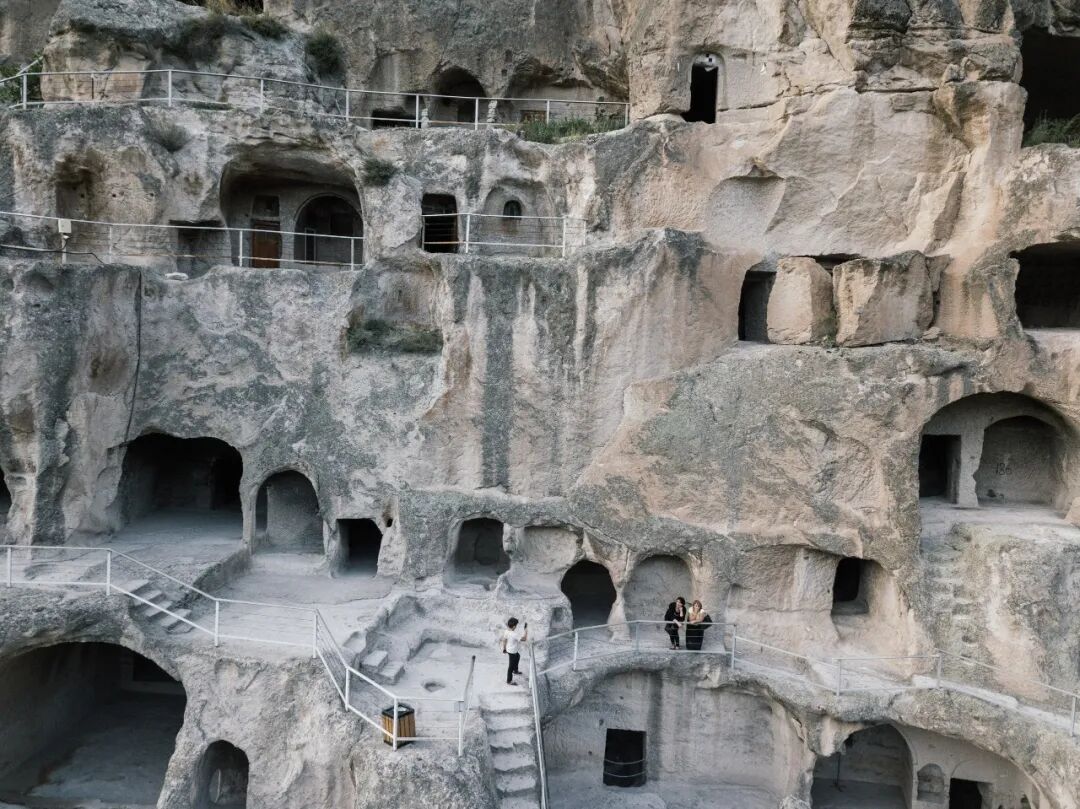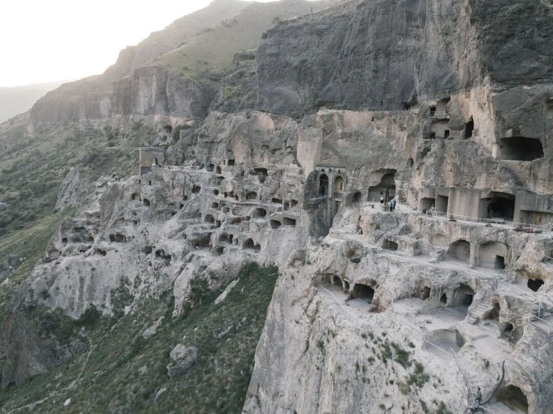 除了乌普利斯外,瓦尔德西亚(Verdzia)的洞穴建筑群也颇具特色,这地方在靠近土耳其边境的库拉河谷中,距离阿尼古城直线距离100公里左右,是一组修建在库拉河畔悬崖上的石窟群,易守难攻。