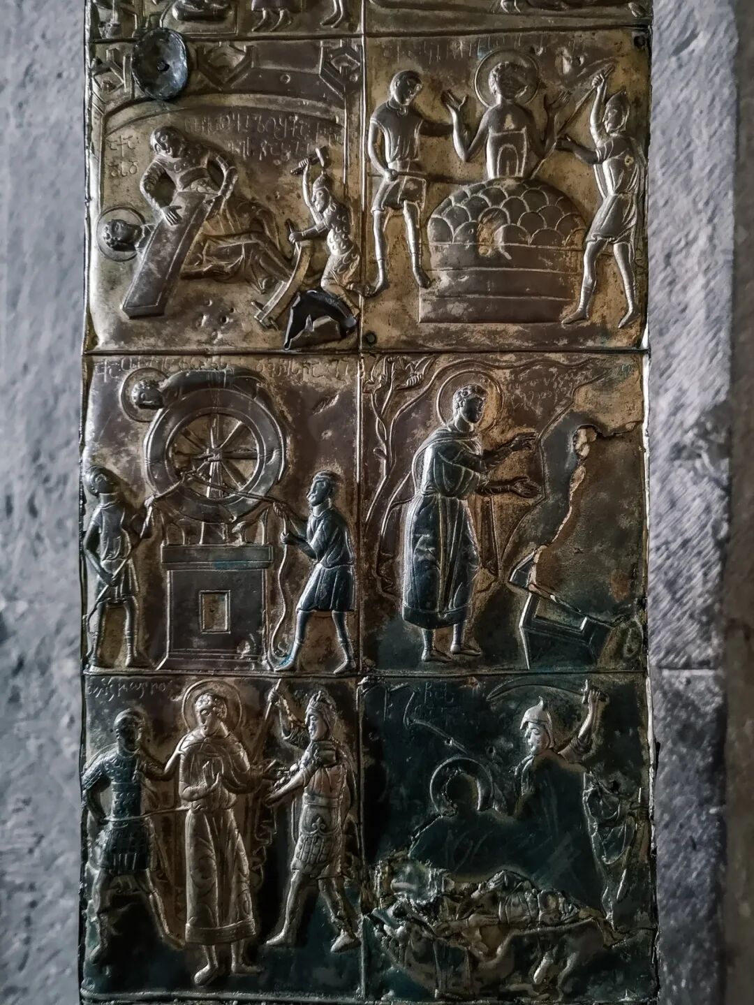 西多尼亚下葬的地方,后来长出了一棵巨大的雪松,前面提到过的那个使徒圣尼诺下令把这棵雪松砍了建教堂。人们把雪松做成了七根柱子,用来做教堂的地基,没想到事出有妖——第七根柱子自己悬浮到了空中。圣尼诺祷告了一整夜,柱子才回到了地上。传说这根柱子是那个激动死的西多尼亚和天使用天堂之力悬浮起来的,柱子里流出的圣水,能够延年益寿包治百病——“生命之柱”的名字就是这么来的。