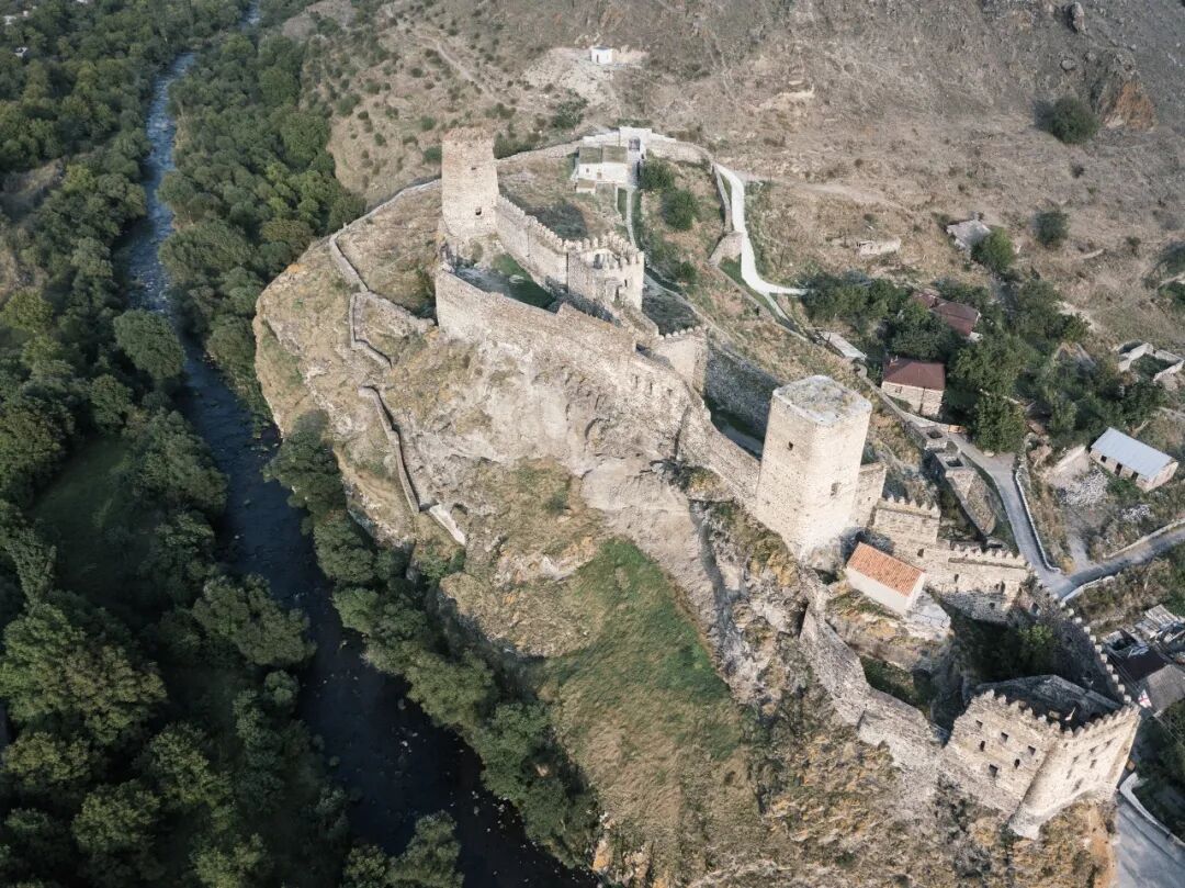 西格纳吉那段里面我就讲到了,由于大高加索地区长年的兵荒马乱,定居点都非常注重防御功能。西格纳吉、乌普利斯、瓦尔德西亚都具有防御功能,姆茨赫塔之所以丢了首都地位正是因为防御能力不足。我在沿着库拉河谷进入瓦尔德西亚的短短一路上就见到两座城堡要塞,因为过去侵略者很容易沿着库拉河一路攻城掠地,弯都不用拐就能顺流而下直捣首都了,防守是一种刚需。