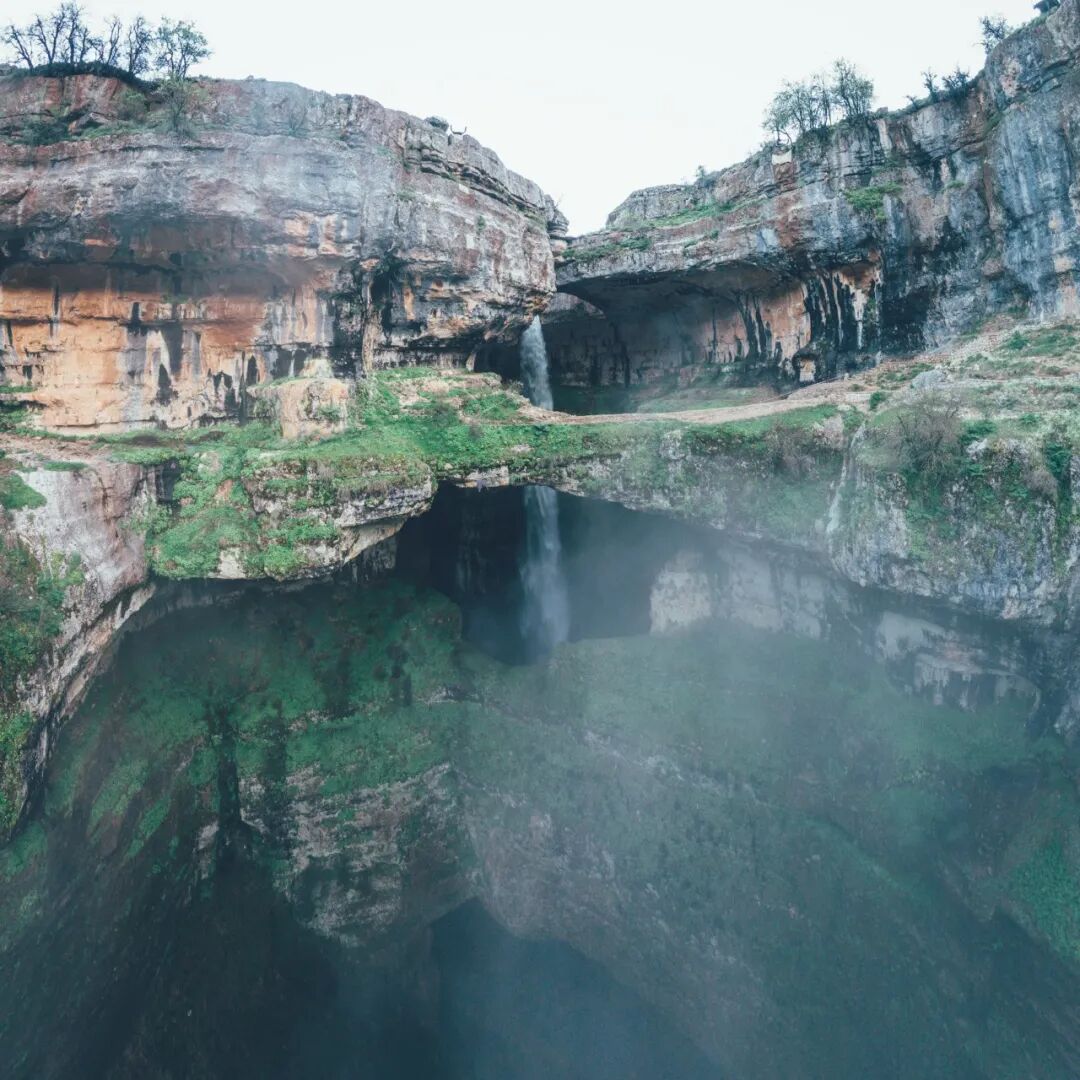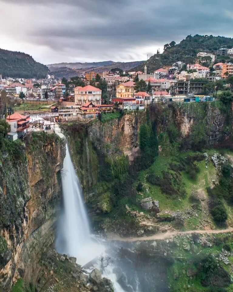 一是杰津(Jezzine),这里是黎巴嫩人的避暑度假胜地,一座建在悬崖瀑布上的小镇,颇有《飞屋环游记》的感觉。二是巴塔拉峡谷瀑布(Baatara Waterfall),是一座侏罗纪时期的石灰岩形成的洞穴瀑布。这两个地方虽然都是瀑布,但跟我们平时看的瀑布完全不一样,前者梦幻,后者魔幻,可以直接拿来设计成宫崎骏动画里的场景。我很难用言语描述,大家直接看图就好了。