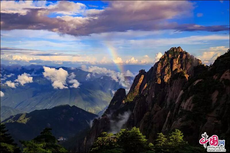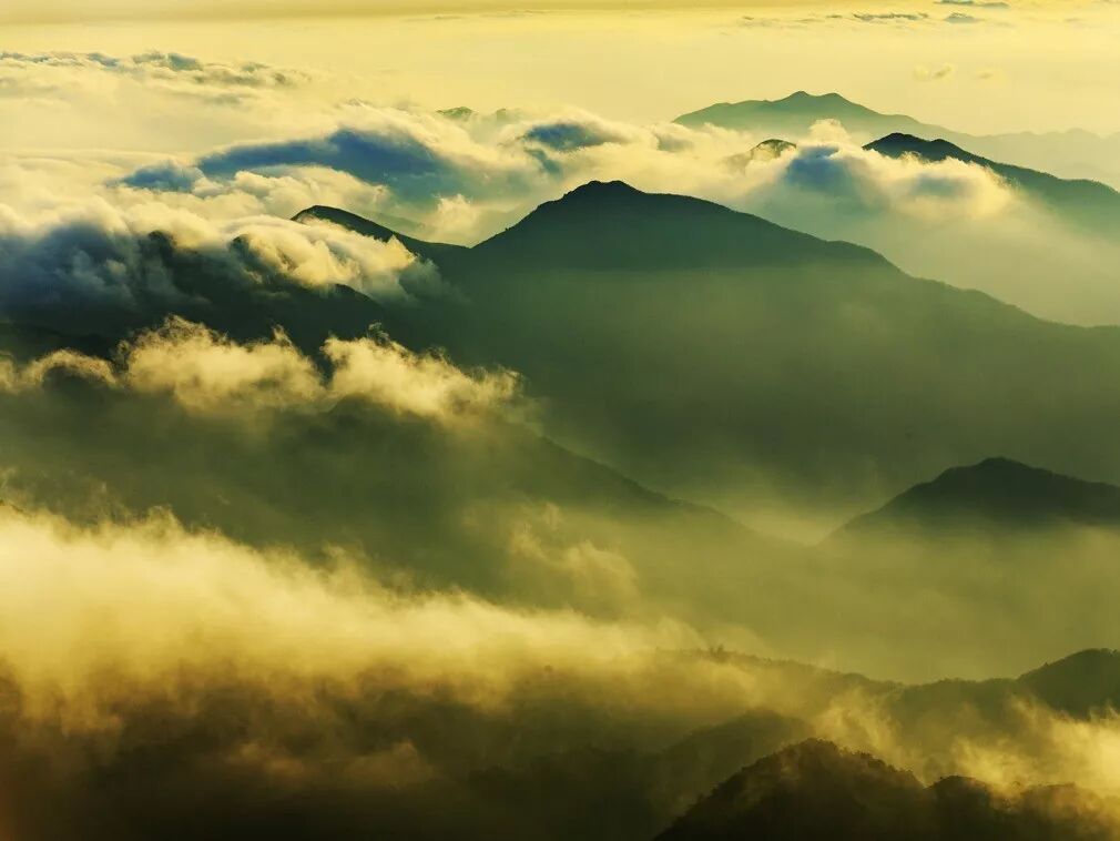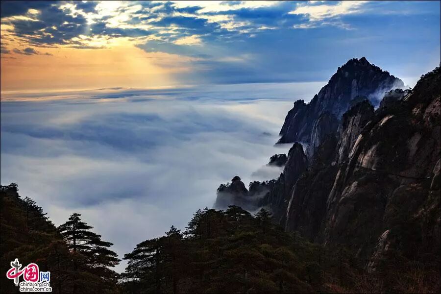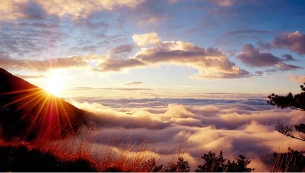 云海是山岳风景的重要景观之一,日出和日落时所形成的“彩色云海”五彩斑斓,最为壮观。