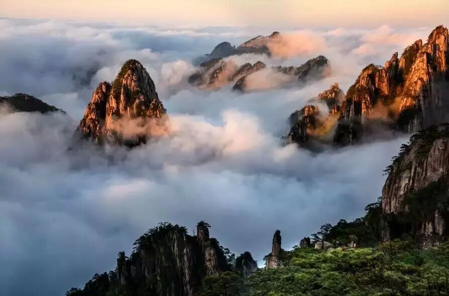 黄山云海是黄山第一奇观,似海非海,山峰云雾相幻化,意象万千,令人称奇。