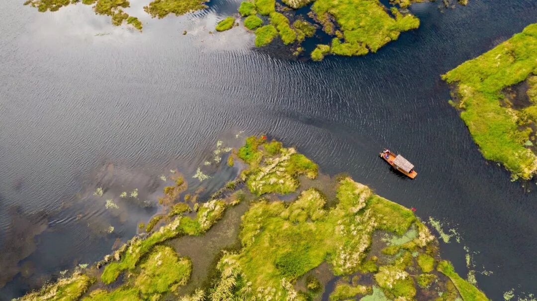 湖上一望无际的荷花海