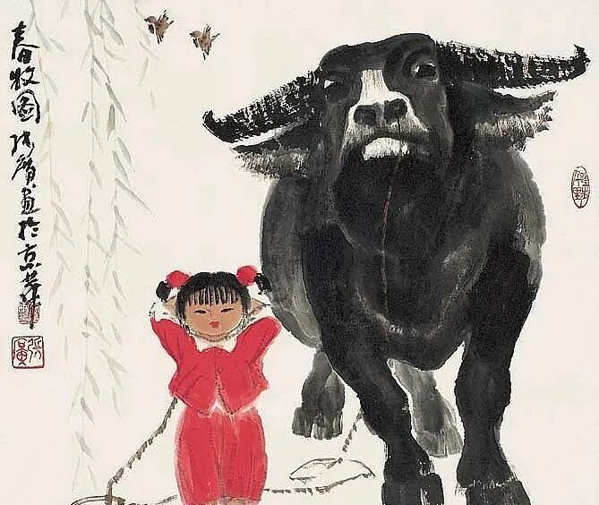 再送大家一组生趣盎然的牛画,憨厚壮实的老牛,稚气未脱的孩童,让人一见就喜欢!
