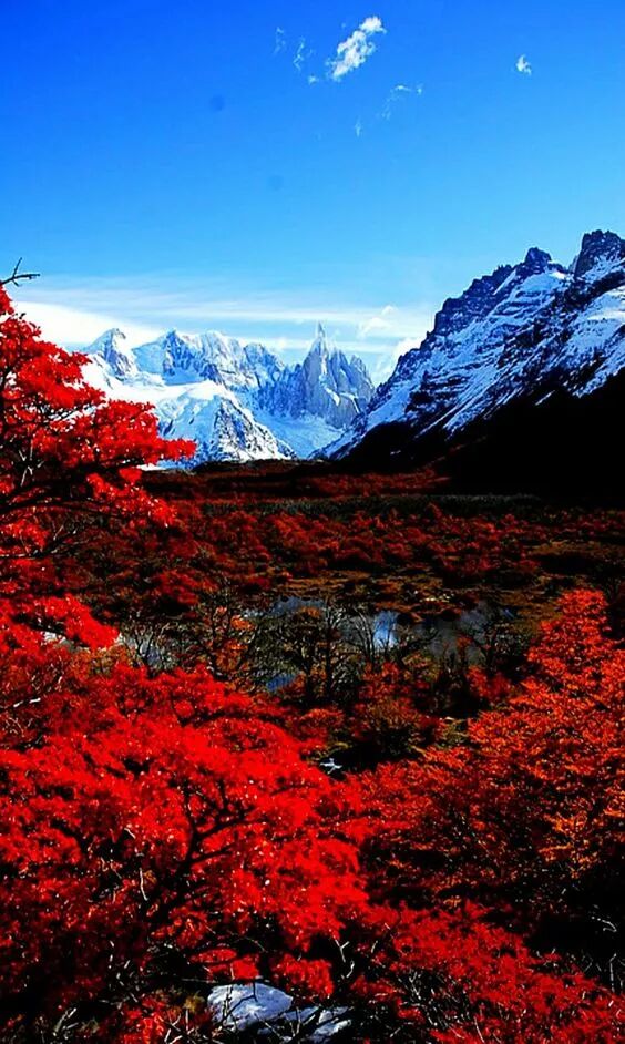一边是秋的火红,一边是冬的雪白,完美无瑕