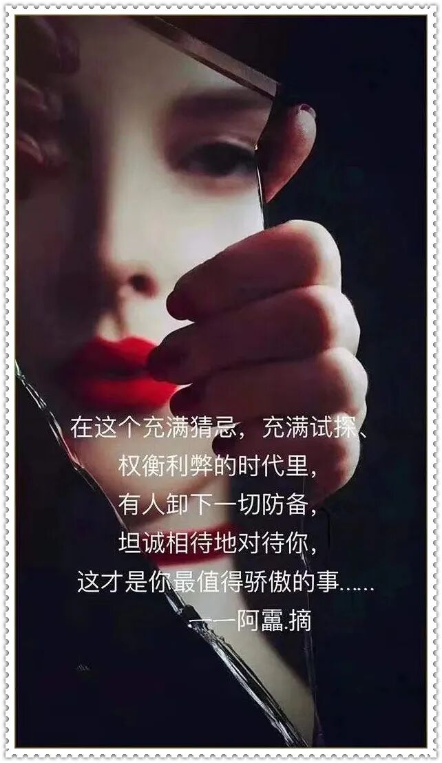 在这个充满猜忌,充满试探、权衡利弊的时代里,有人卸下一切防备,坦诚相待地对待你,这才是你最值得骄傲的事…….........................................................遇烂人及时止损,遇烂事及时抽身。格局大的人都懂得一个道理:强者互帮,弱者互争。人生最大的愚蠢是相互为难。人生匆匆,自渡是一种能力,而渡人就是一种格局。.........................................................