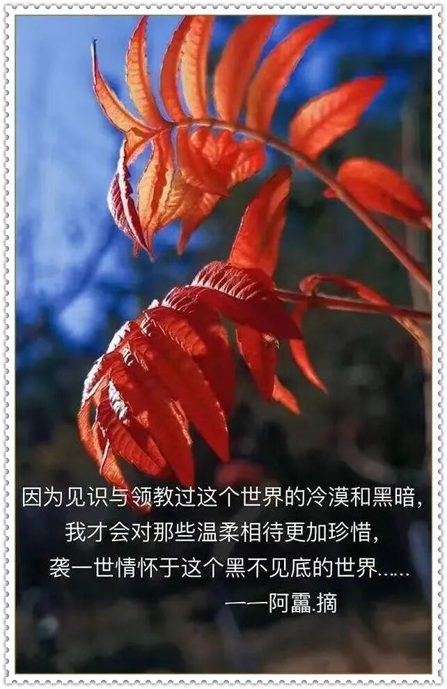 因为见识与领教过这个世界的冷漠和黑暗,我才会对那些温柔相待更加珍惜,袭一世情怀于这个黑不见底的世界……