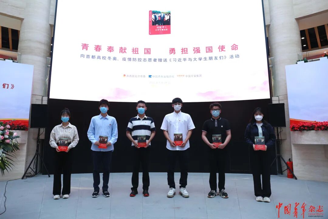 为了深入学习贯彻习近平总书记在庆祝中国共产主义青年团成立100周年大会上的重要讲话精神,深入领会习近平总书记关于青年工作的重要思想,大力发扬北京冬奥精神,引领首都高校大学生牢记习近平总书记的教导,奋进新征程、建功新时代,以实际行动迎接党的二十大胜利召开,本次活动向参与首都高校冬奥冬残奥志愿者、疫情防控志愿者赠送《习近平与大学生朋友们》3万册。共青团北京市委书记李军会,中国平安集团党委副书记、副总经理黄宝新,中国青年出版总社党委书记、董事长皮钧等出席了本次活动,活动由中国青年出版总社党委副书记、纪委书记王剑主持。活动现场,六名高校冬奥志愿者代表接受赠书。首都师范大学胡锦昊同学、中央民族大学翟柳同学分享了各自在冬奥期间的志愿服务经历,以及学习习近平总书记在建团百年庆祝大会上的重要讲话和进一步发扬北京冬奥精神的体会。胡锦昊同学曾在北京冬奥组委技术运行中心担任网络安全值班经理助理,他表示:“62个日日夜夜,近400小时的上岗时间,与冬奥相遇,遇见的是冰雪的盛会,留下的是青春的记忆,根植的是受益一生的情怀。冬奥会刚刚结束,5月的北京又遭遇了新冠肺炎疫情的席卷,冬奥志愿者们纷纷化身防疫志愿者,在校园中的各个岗位挥洒汗水,延续志愿服务精神。‘00后’的我们将牢记习近平总书记的嘱托,不负时代,不负韶华,以青春之我奉献青春之民族,奉献青春之中国!”冬奥期间,翟柳同学在校内服务保障的宣传报道组做志愿服务,她表示:“冬奥课堂教给我们的不仅是参与冰雪运动,而且要用北京冬奥精神激发使命担当,凝聚砥砺奋进的磅礴力量。在《习近平与大学生朋友们》这本书中,总书记对青年学生寄语:‘在什么时间就要做什么事情,做什么事情都要脚踏实地。’‘你们年轻人,处于一个伟大的时代,有着这么伟大的目标,可谓生逢其时,为之奋斗吧!’作为新一代首都青年,当继续发扬和传承冬奥精神,以昂扬的斗志投入到建设祖国、服务人民、疫情防控等工作中。”中国平安集团党委副书记、副总经理黄宝新表示,此次赠书活动是积极响应党中央关爱青年号召的实际行动,也是平安公益活动中浓墨重彩的一笔。相信青年朋友会带着习总书记的殷切期待,到新时代广阔天地中去施展抱负、建功立业,为实现中华民族伟大复兴的中国梦作出青春的贡献。成立34年来,中国平安始终秉承“回馈社会、建设国家”的企业初心,积极投身志愿服务事业。中国平安自2018年成立平安志愿者协会,迄今已在全国28个地区设立志愿者协会分会,覆盖集团20家公司。“今年5月,在北京疫情防控最紧要的关头,平安北京地区员工自发成立志愿者分队,例如平安产险北京分公司员工主动参与多个社区志愿服务,身体力行,共筑防疫长城。”黄宝新说。