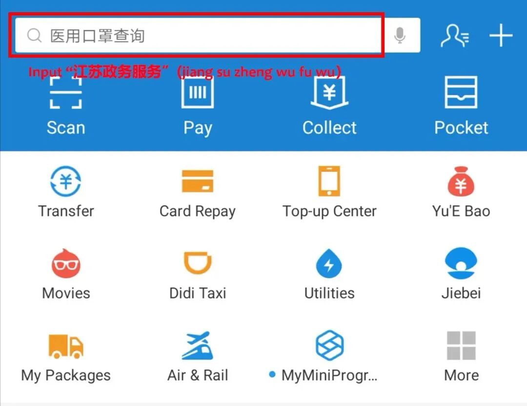 (2) Or, after verifying your identity in Alipay, search for “随申办” (pinyin: Sui Shen Ban; meaning: Shanghai Public Services Online), and enter the mini program.