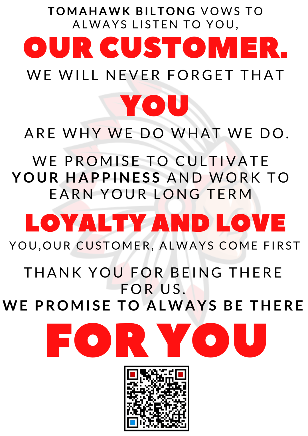 Tomahawk biltong was founded in December 2020, with one goal in mind, supplying people with the platinum standard in biltong and at affordable prices without scrimping on the product. The business was built on the following values: