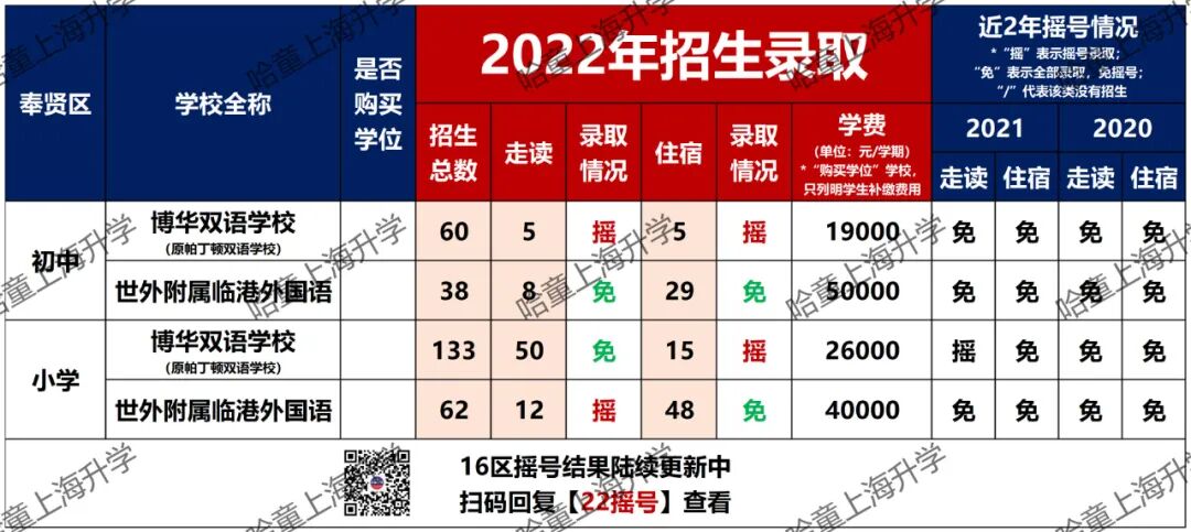 奉贤今年博华双语学校也挺受区内家长追捧,以往都是免摇号全部录取,今年除了小学部的走读计划外,都要摇号了。