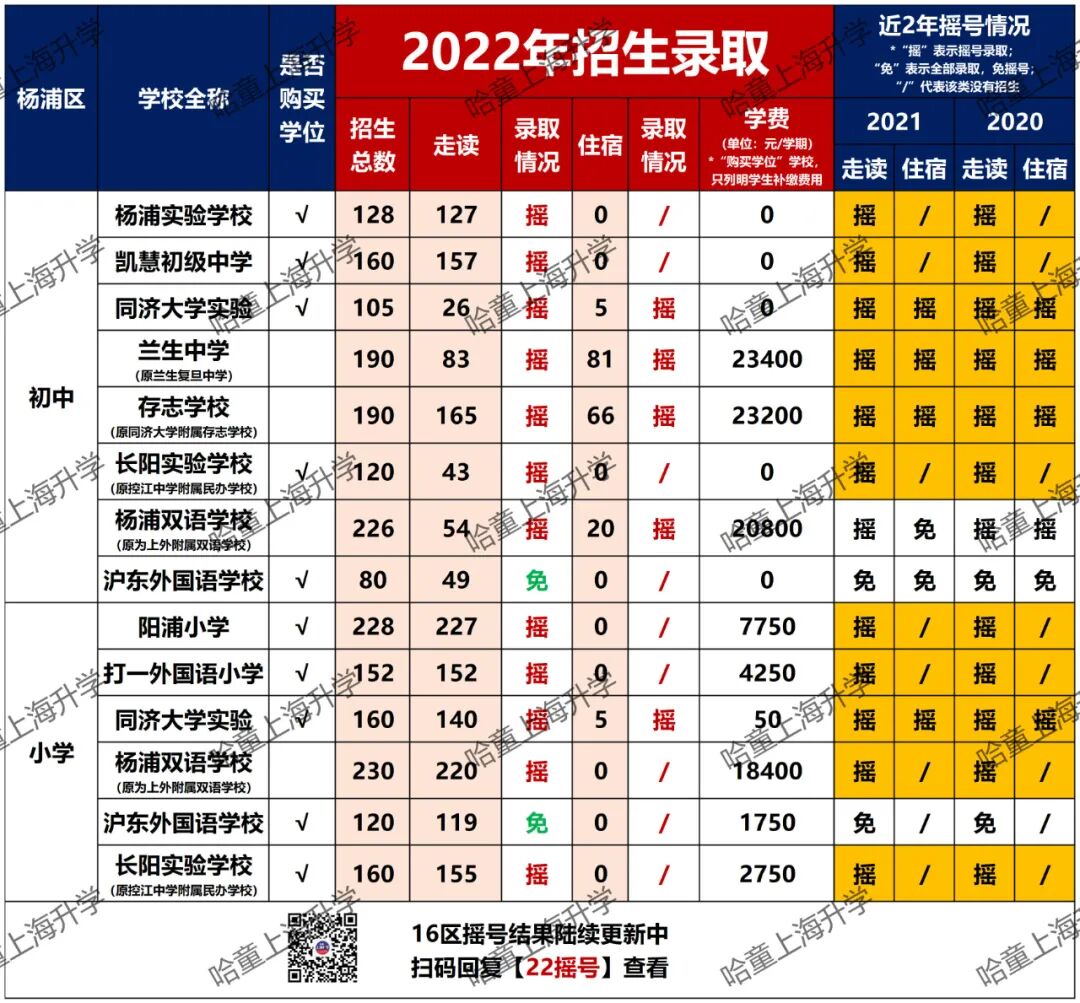 杨浦和徐汇一样,都是教育强区,公民办实力相当,区内还有”一姐“兰生复旦坐镇,热度自然不低。