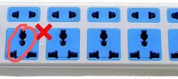 这种插座在设计时为兼容两插或三插的国外插头(如英标、美标、欧标等插头),会出现插孔大的情况,容易引起触电事故,且这种插座接片与电气插头接触面积过小,容易使插片过热而导致火灾发生。