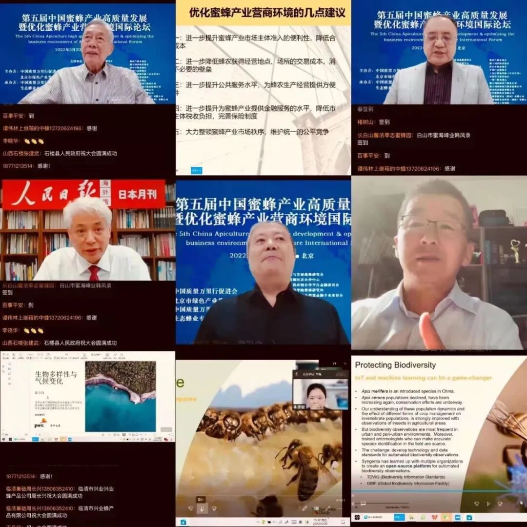 5月20日、中国品質万里行促進会と北京市エコ産業発展促進会の主催により、中国品質万里行促進会エコ養蜂業専門委員会が開催運営する「第5回中国養蜂業の高度な発展およびビジネス環境の最適化に関する国際フォーラム」が、北京のメイン会場と各地のサブ会場、国際会場を結んでオンラインで開催された。