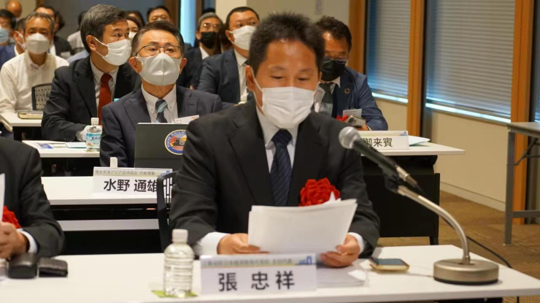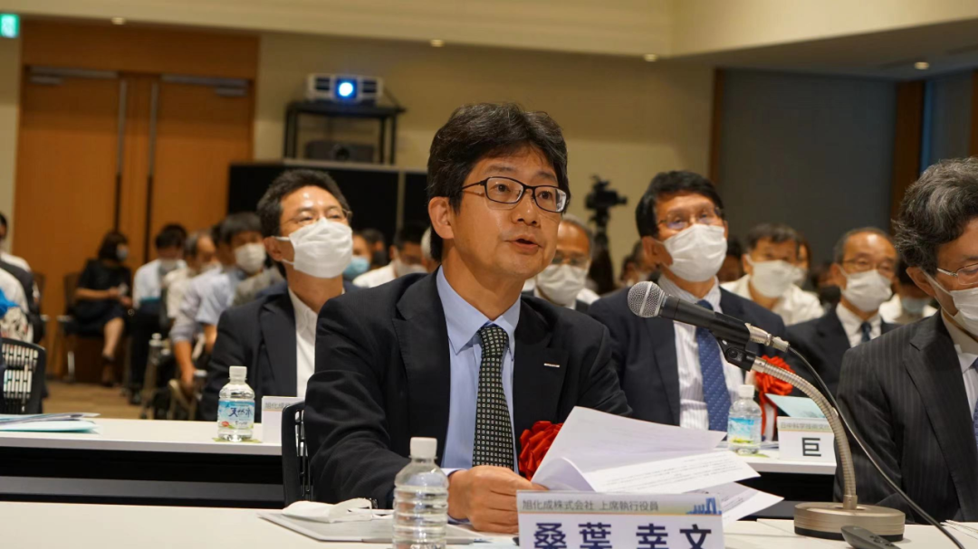 东丽株式会社经营企划室参事黑田健和旭化成株式会社高级执行董事、移动和工业事业本部长桑叶幸文在东京分会场发言。他们回顾了各自所在企业参与南通发展的情况和成果,感谢中方给予的支持,并表示愿与中方一道深入推进新材料产业的技术升级和效益增益。