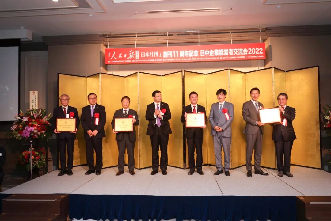 《人民日报海外版》日本月刊理事长藤原洋、日本深圳经贸文化促进会会长翁道逵,Zann Corporation会长中村龙道和日本代表平冈秀之,分别为这四家企业的代表一条好男、若尾达也、大川训弘、村越隆祐颁发了“公示登录板”。
