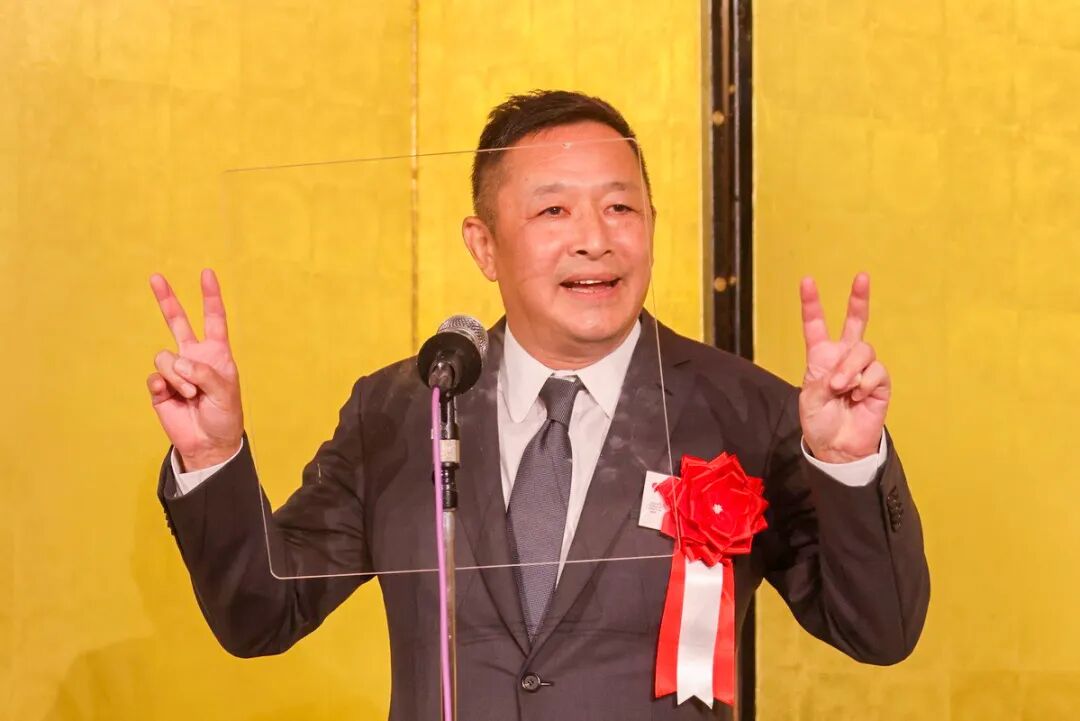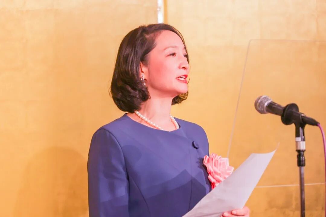 日本财界研究所代表取缔役村田博文发表祝酒词。中国驻日本大使馆公使衔参赞张沛霖、日本医疗国际化机构理事长蒋晓松、T&K株式会社代表取缔役社长华思林等嘉宾移步主席台,与在场来宾举杯共饮、合影留念。