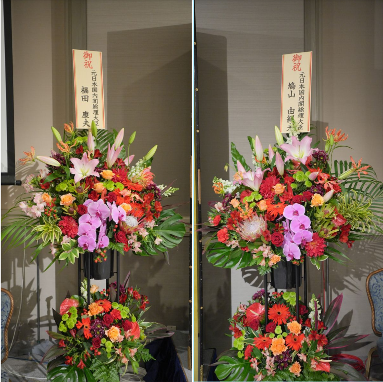 当天,日本前首相福田康夫、日本前首相鸠山由纪夫专程送来花篮,日本公明党党首山口那津男发来贺电。中国驻日本大使馆公使衔参赞张沛霖等到会祝贺。
